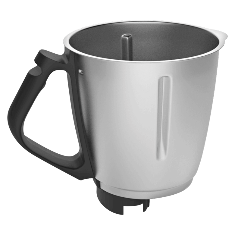 Il suo sistema di riscaldamento e il sensore della temperatura sono entrambi incorporati nella base del boccale. Con la sua impugnatura ergonomica, posizionarlo nella base di Bimby diventa un gioco da ragazzi.