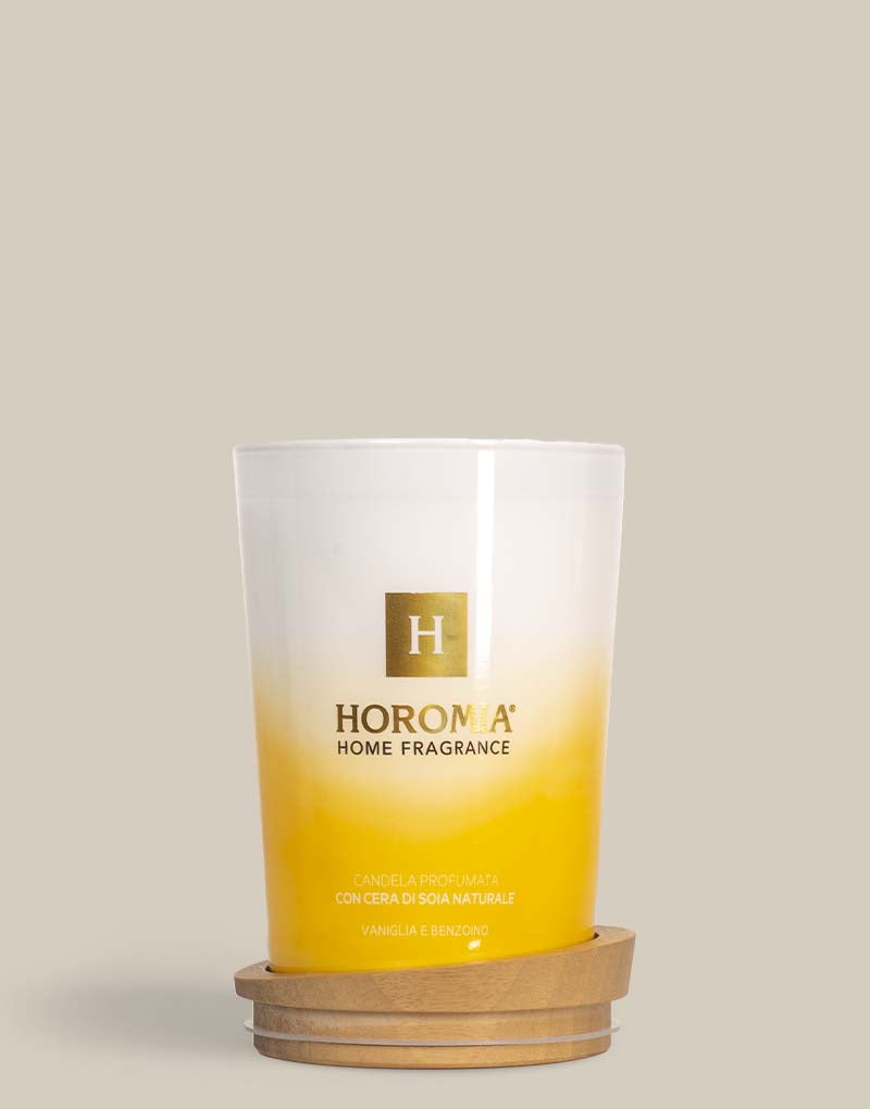 La Candela Profumata, con cera di soia naturale, Vaniglia e benzoino appartiene alla nuova linea Home Fragrance di Horomia, dedicata alla profumazione della casa.